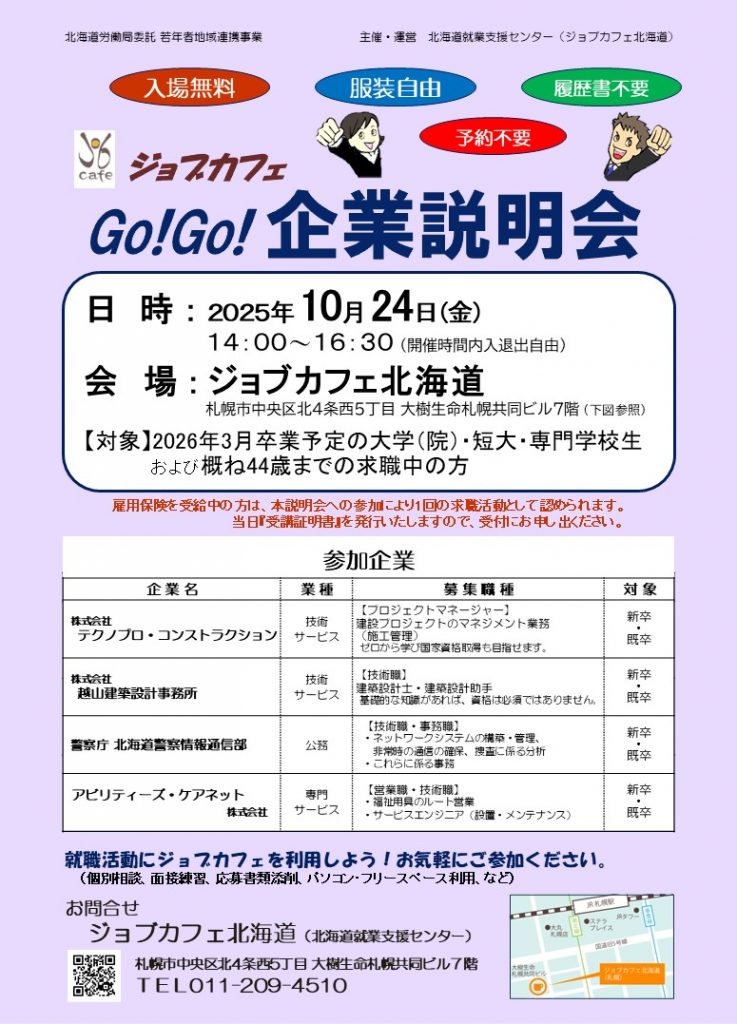 【札幌・対面】10月24日(金) 14:00~16:30 Go!Go!企業説明会