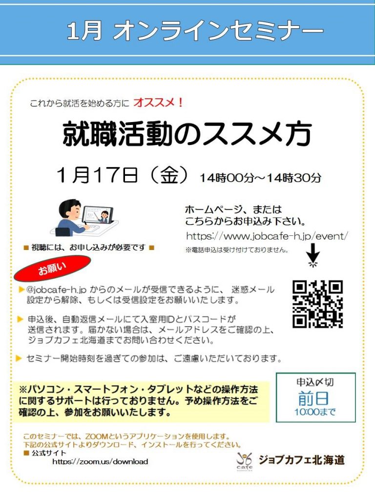 【オンライン】1月17日(金)就職活動のススメ方 14:00~14:30