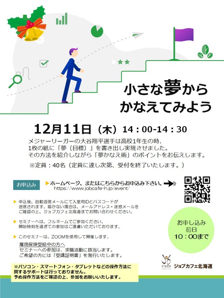 【オンライン】12月11日(木)小さな夢からかなえてみよう 14:00~14:30