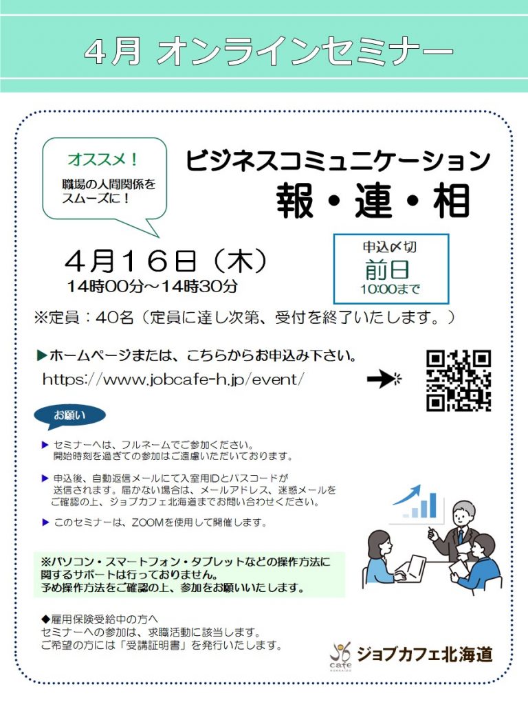 【オンライン】4月16日(木)ビジネスコミュニケーション 報・連・相 14:00~14:30