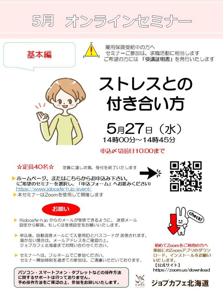 【オンライン】5月27日(水)ストレスとの付き合い方 14:00~14:45