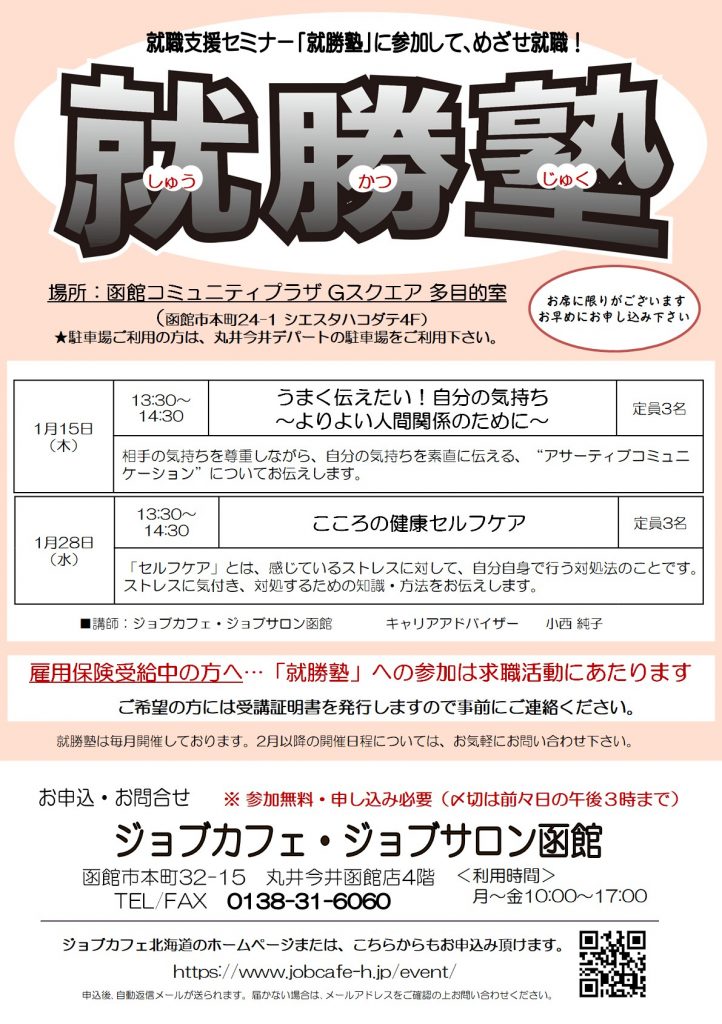【函館・対面】1月15日(木)就勝塾 うまく伝えたい!自分の気持ち~よりよい人間関係のために~ 13:30~14:30
