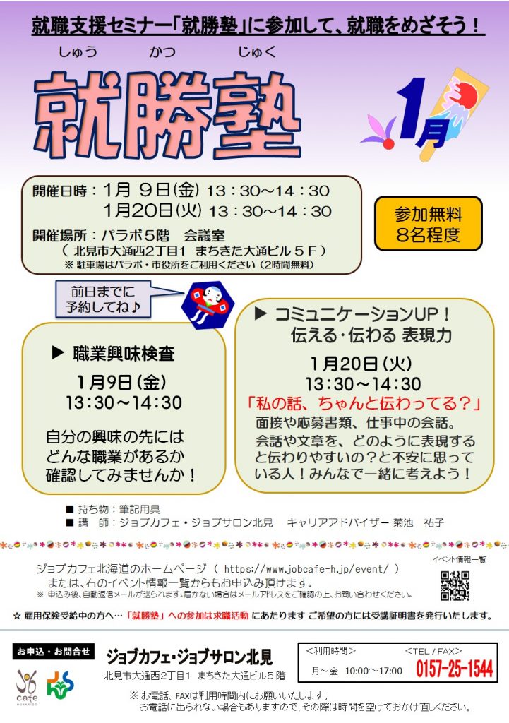 【北見・対面】1月9日(金)就勝塾 職業興味検査 13:30~14:30