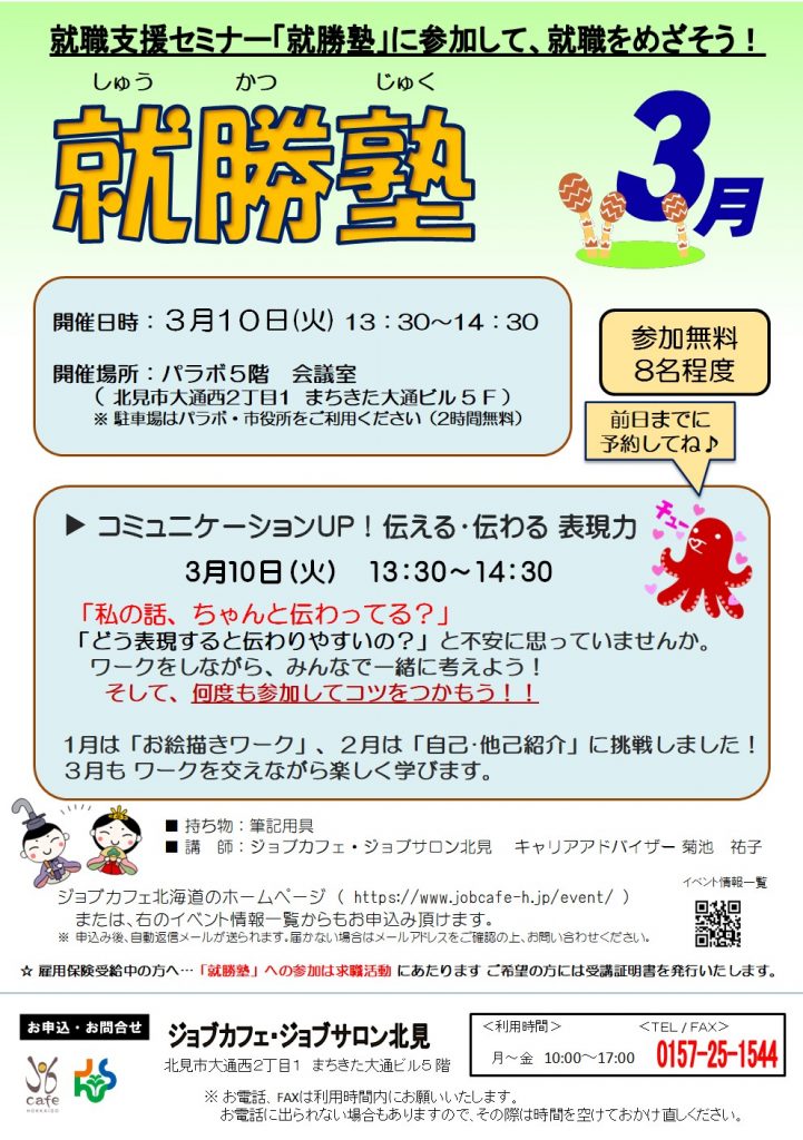 【北見・対面】3月10日(火)就勝塾 コミュニケーションUP!伝える・伝わる 表現力 13:30~14:30