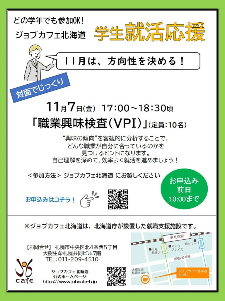 【学生就活応援】11月7日(金)職業興味検査(VPI) 17:00~18:30