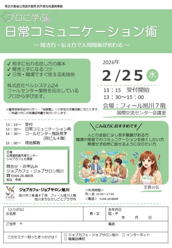 【旭川・対面】2月25日(水)プロに学ぶ日常コミュニケーション術 ~聞き方・伝え方で人間関係が変わる~ 13:30~15:00