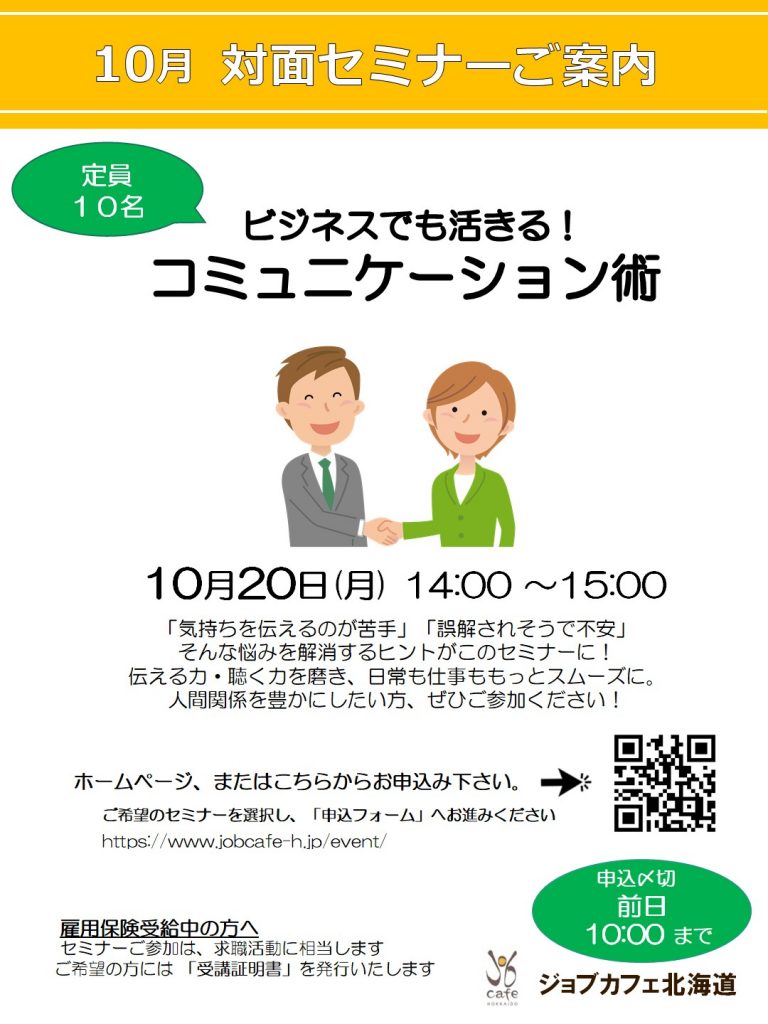 【札幌・対面】10月20日(月)ビジネスでも活きる!コミュニケーション術 14:00~15:00