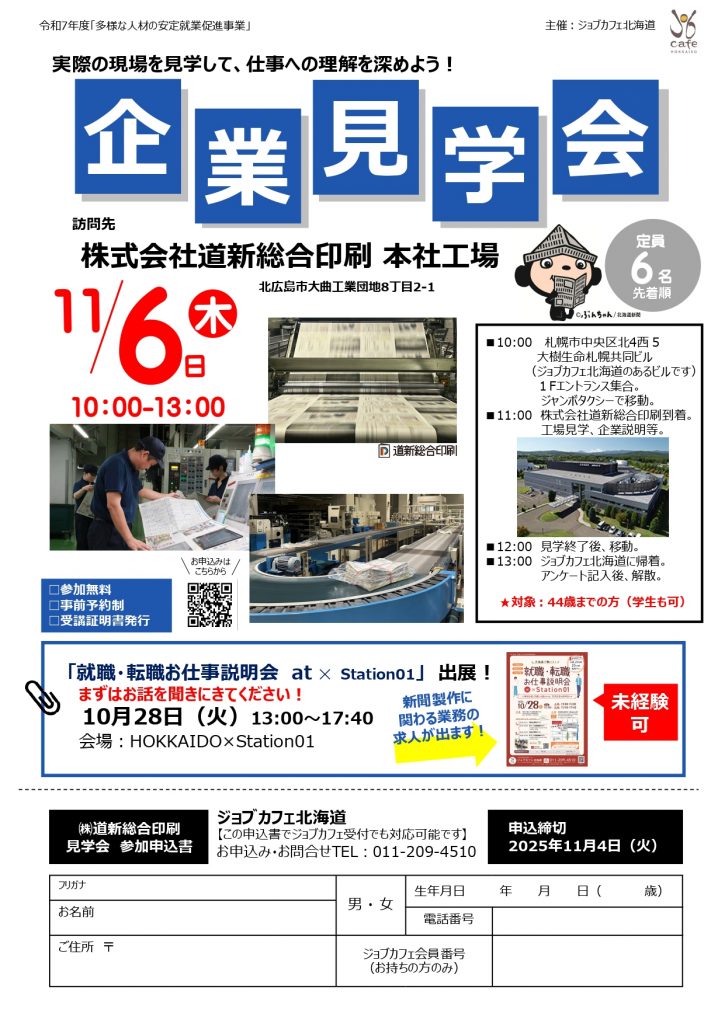 【札幌】11月6日(木)株式会社道新総合印刷 ※こちらお申込み多数により定員に達したため、お申込みを締め切りました。