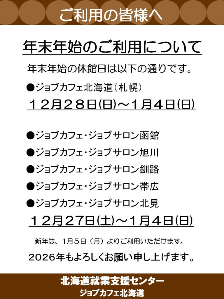 年末年始のご利用について